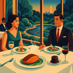 * Jetzt kann Peter das Abendessen mit seinen Freunden im 2941 Restaurant Falls Church genießen!