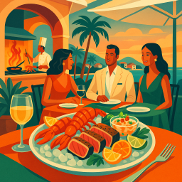 Dinner outdoor under the moonlight! Great atmosphere and service! Good portion for the entrees, very attentive wait staff! One of the best experiences at Cayman!