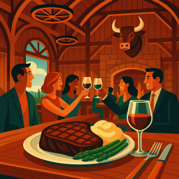 Has a fantastic atmosphere. Couldn't believe how big it was. The steak was great. The service was also wonderful.