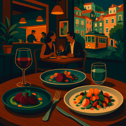 * Jetzt kann Peter das Abendessen mit seinen Freunden im BouBou's Lisboa genießen!