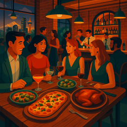 * Jetzt kann Peter das Abendessen mit seinen Freunden im Bridgette Bar Calgary genießen!