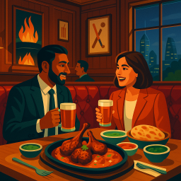* Jetzt kann Peter das Abendessen mit seinen Freunden im Brigadiers London genießen!