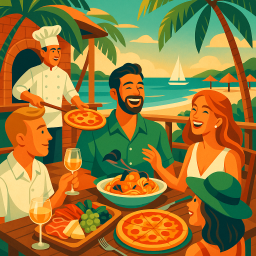 Nehmen wir an, Peter hat einen großartigen Morgen und beschließt, seine drei Freunde am selben Tag um 18 Uhr ins Casa Nonna Aruba Noord einzuladen.