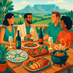 * Jetzt kann Peter das Abendessen mit seinen Freunden im Chefs Warehouse Beau Constantia Kaapstad genießen!