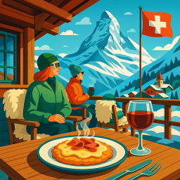 We were on a long hike in the Alps and there on the hill was a charming wooden hut, we climbed to it and the nine of us found two long tables right by the window. The Service was efficient and friendly, the atmosphere all you could ask for in a swiss