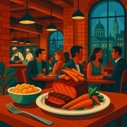 * Jetzt kann Peter das Abendessen mit seinen Freunden im Commission Row Indianapolis genießen!