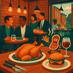 * Jetzt kann Peter das Abendessen mit seinen Freunden im Community Tavern Chicago genießen!