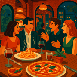* Jetzt kann Peter das Abendessen mit seinen Freunden im Comune Columbus genießen!