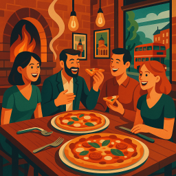 * Jetzt kann Peter das Abendessen mit seinen Freunden im Crisp Pizza London genießen!