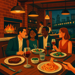 * Jetzt kann Peter das Abendessen mit seinen Freunden im Dēliz Italian Steakhouse Chicago genießen!