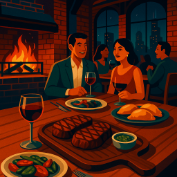 * Jetzt kann Peter das Abendessen mit seinen Freunden im El Che Steakhouse & Bar Chicago genießen!