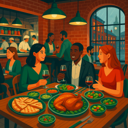 * Jetzt kann Peter das Abendessen mit seinen Freunden im Erst Manchester genießen!