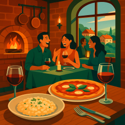 * Jetzt kann Peter das Abendessen mit seinen Freunden im Fiamma cremisi genießen!