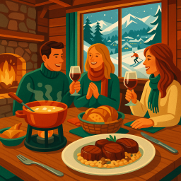 * Jetzt kann Peter das Abendessen mit seinen Freunden im Game Creek Chalet Vail genießen!