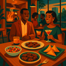 * Jetzt kann Peter das Abendessen mit seinen Freunden im Gemini Bistro Nairobi genießen!