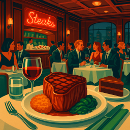 * Jetzt kann Peter das Abendessen mit seinen Freunden im Gibsons Bar & Steakhouse Rosemont genießen!