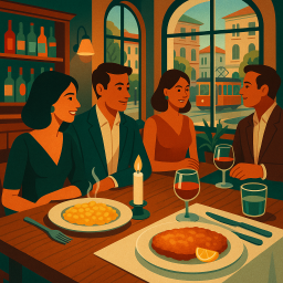 * Jetzt kann Peter das Abendessen mit seinen Freunden im Gloria Osteria Milano genießen!