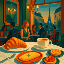 * Jetzt kann Peter das Abendessen mit seinen Freunden im Grand Café Tortoni Paris genießen!