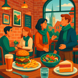 * Jetzt kann Peter das Abendessen mit seinen Freunden im Harry's Restaurant Exeter genießen!