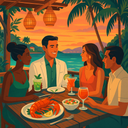* Jetzt kann Peter das Abendessen mit seinen Freunden im Hotel Manapany genießen!