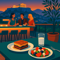 * Jetzt kann Peter das Abendessen mit seinen Freunden im Hytra Restaurant & Bar Athina genießen!