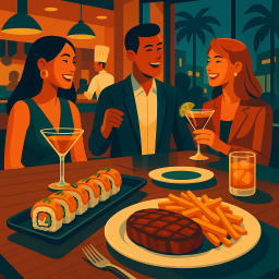 Great hip spot in Bellevue for steak, fish, and sushi. The classic steaks peppercorn style are fantastic. The sushi is great. End your night with a delightful dessert!
