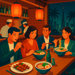 * Jetzt kann Peter das Abendessen mit seinen Freunden im Kinoya Dubai genießen!