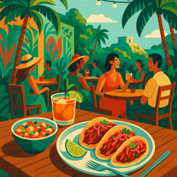 * Jetzt kann Peter das Abendessen mit seinen Freunden im La Coqueta Tulum genießen!