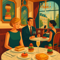 * Jetzt kann Peter das Abendessen mit seinen Freunden im La Galerie Paris genießen!