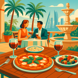 * Jetzt kann Peter das Abendessen mit seinen Freunden im La Pergola Manama genießen!