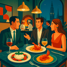 * Jetzt kann Peter das Abendessen mit seinen Freunden im Le Pristine Antwerpen genießen!