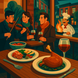 * Jetzt kann Peter das Abendessen mit seinen Freunden im Le Violon Montréal genießen!