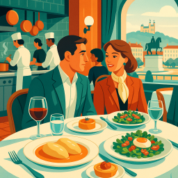 * Jetzt kann Peter das Abendessen mit seinen Freunden im L'Institut Restaurant Lyon genießen!