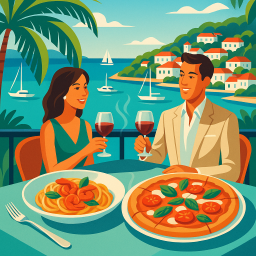 * Jetzt kann Peter das Abendessen mit seinen Freunden im L'Isola Gustavia genießen!