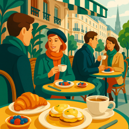Nehmen wir an, Peter hat einen großartigen Morgen und beschließt, seine drei Freunde am selben Tag um 18 Uhr ins Loulou Cafe Saint-Germain Paris einzuladen.