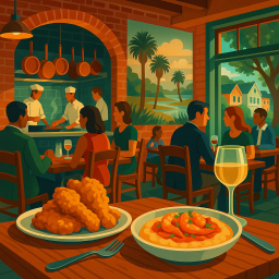 * Jetzt kann Peter das Abendessen mit seinen Freunden im Lowland Charleston genießen!