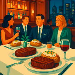 * Jetzt kann Peter das Abendessen mit seinen Freunden im Manny's Steakhouse Minneapolis genießen!