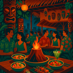 Tiki-themed. Good food, great drinks. This was our second visit, and we had so much fun the first time, when we came back into town, we had to . We ordered the pu-pu platter and drinks. Great way to spend a Friday evening.