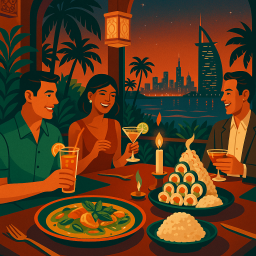 * Jetzt kann Peter das Abendessen mit seinen Freunden im MayaBay Dubai دبي genießen!