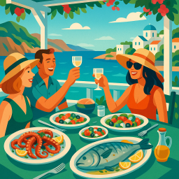 * Jetzt kann Peter das Abendessen mit seinen Freunden im Molos Restaurant genießen!