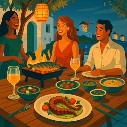 * Jetzt kann Peter das Abendessen mit seinen Freunden im Nōema Mykonos Mikonos genießen!