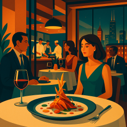 * Jetzt kann Peter das Abendessen mit seinen Freunden im Next Restaurant Chicago genießen!