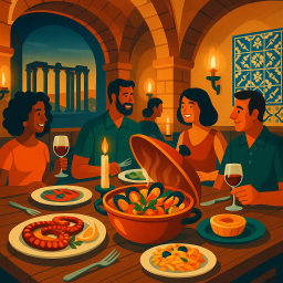 * Jetzt kann Peter das Abendessen mit seinen Freunden im O Templo Évora genießen!