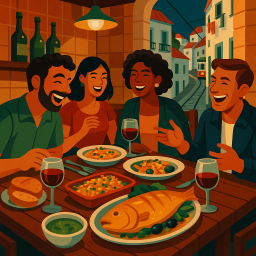 * Jetzt kann Peter das Abendessen mit seinen Freunden im O Velho Eurico Lisboa genießen!