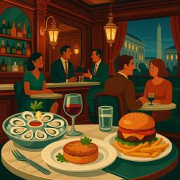 * Jetzt kann Peter das Abendessen mit seinen Freunden im Old Ebbitt Grill Washington genießen!