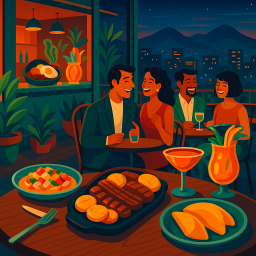 * Jetzt kann Peter das Abendessen mit seinen Freunden im Omnia Restaurante Bar Bogotá genießen!