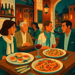 * Jetzt kann Peter das Abendessen mit seinen Freunden im Osteria alle Testiere Calle del Mondo Novo Venezia genießen!