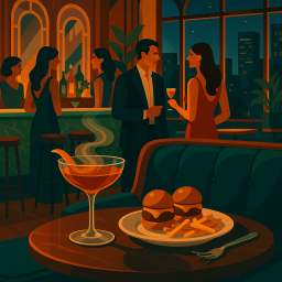 * Jetzt kann Peter das Abendessen mit seinen Freunden im Refuge Houston genießen!