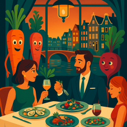* Jetzt kann Peter das Abendessen mit seinen Freunden im Restaurant Flore Amsterdam genießen!