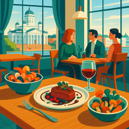 * Jetzt kann Peter das Abendessen mit seinen Freunden im Restaurant Olo Helsinki genießen!